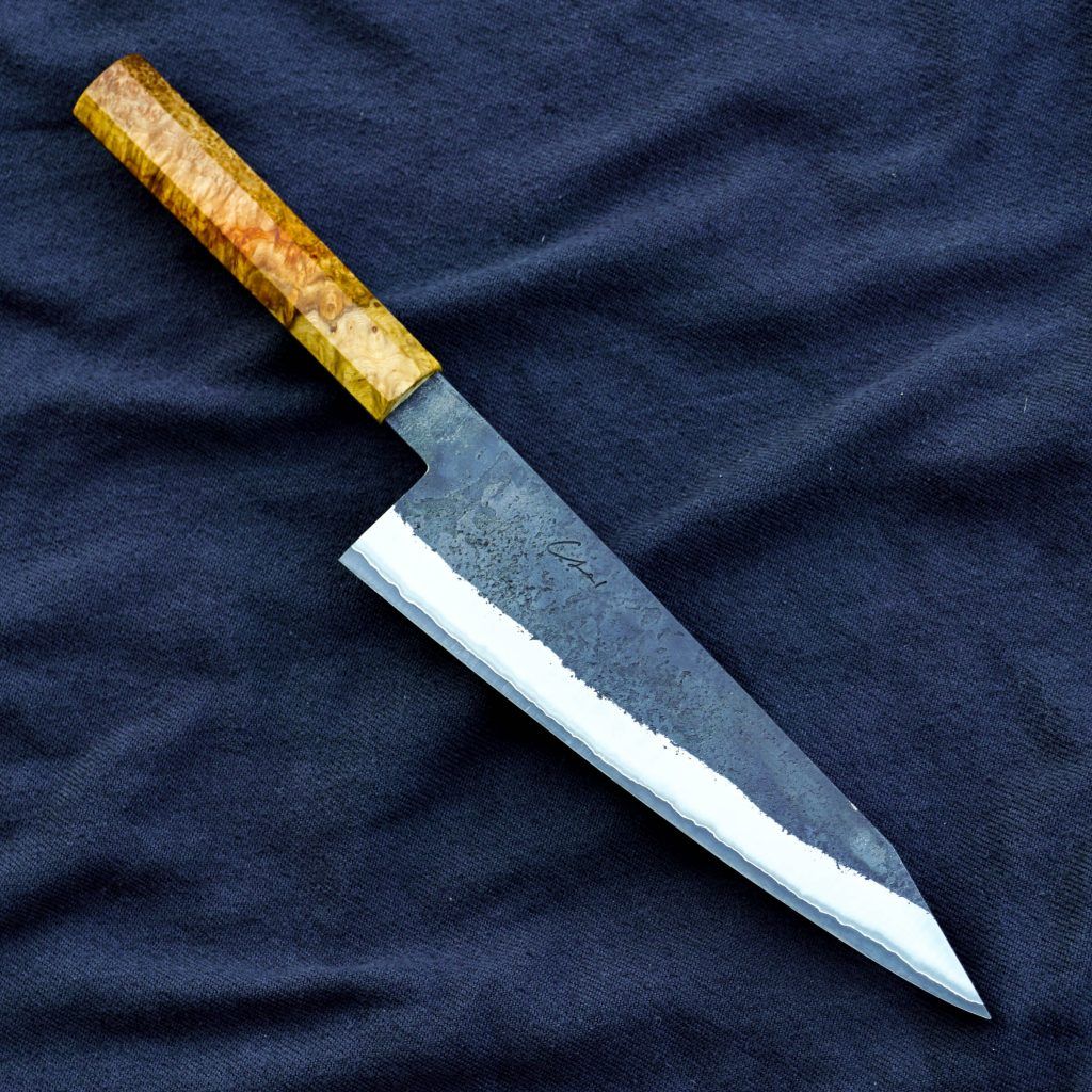 k-tip gyuto 22 cm. Aogami super. Amboina burl.